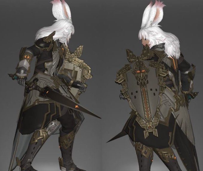 ジェットブラックけちるときは胴だけチャコールグレイにしよう 盾はバルダーとナイトスチールがおすすめ アレスヘルムかっこいいよね すき 14始める前からすきだった 50になったら速攻全身揃えに行ったよね それからもうずっと ファンタジーのキャラクター