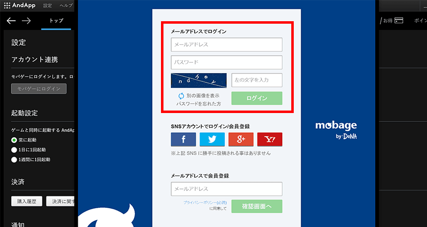 モバゲー ログイン 方法