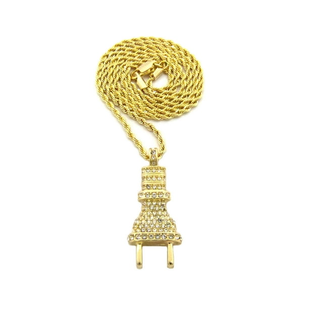 Gold Plated Silver Electric Wall Plug Pendant Hip Hop 24 Rope Chain Necklace Ebay