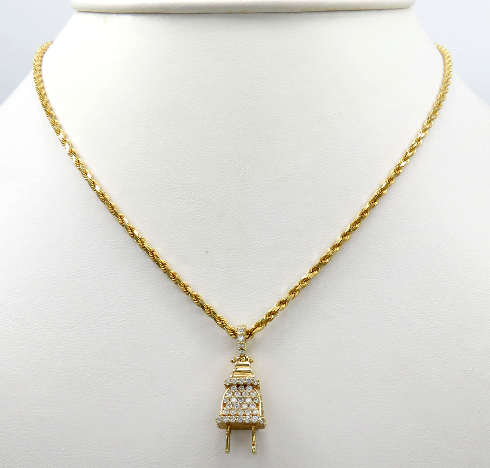 1 5 Ct T W Diamond Electrical Plug Necklace Charm In 10k Gold Piercing Pagoda