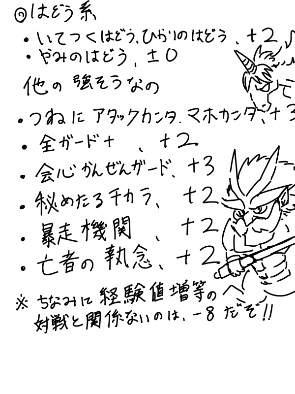 プ口トン V Twitter イルルカの特性コストの一部のまとめです あくまで自分用なので偏ってます