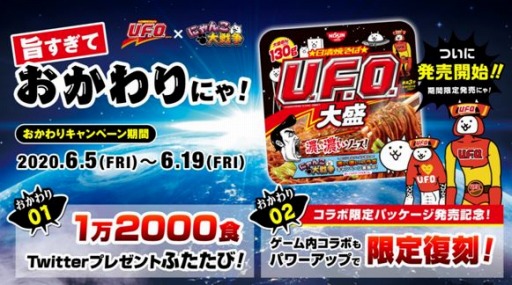 日清焼そばu F O にゃんこ大戦争 コラボ限定パッケージ 日清焼そばu F O 大盛 発売記念 旨すぎておかわりにゃ プレゼントキャンペーン コラボイベント開催のお知らせ Game Media